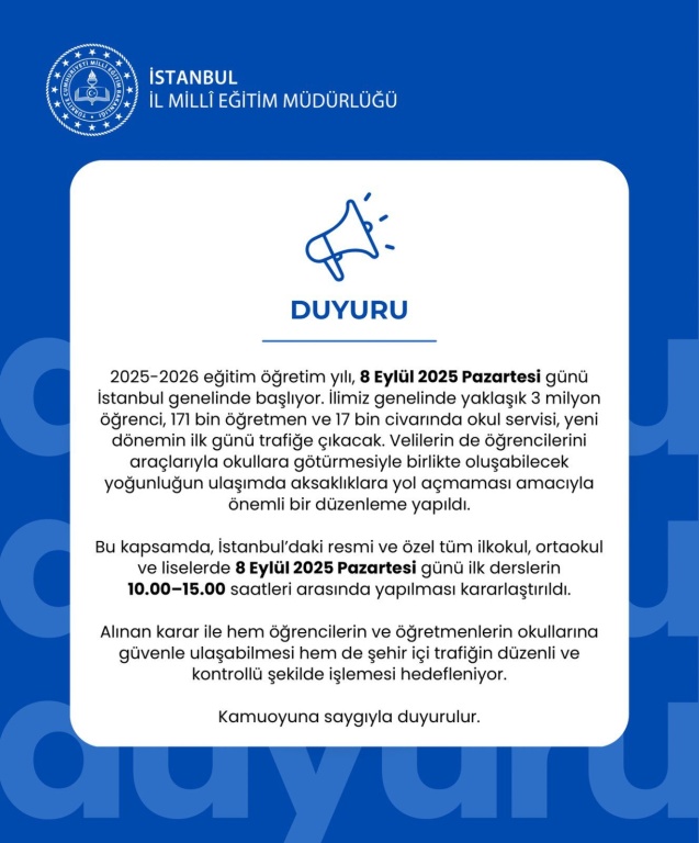 Etiketler :İlk Gün Eğitim Öğretim Saatleri,